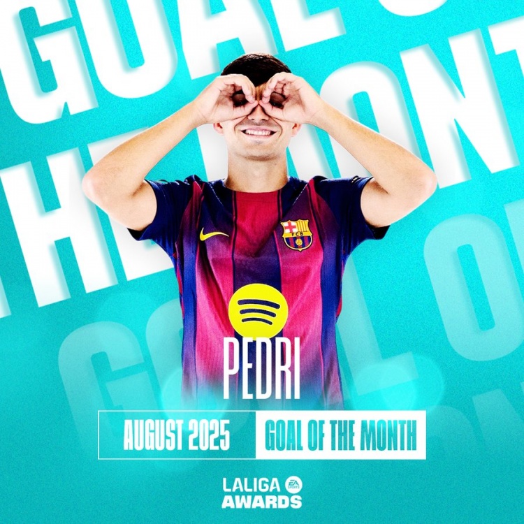 9月10日讯 西甲官方消息,佩德里对阵莱万特打入的远射当选联赛8月最佳进球。